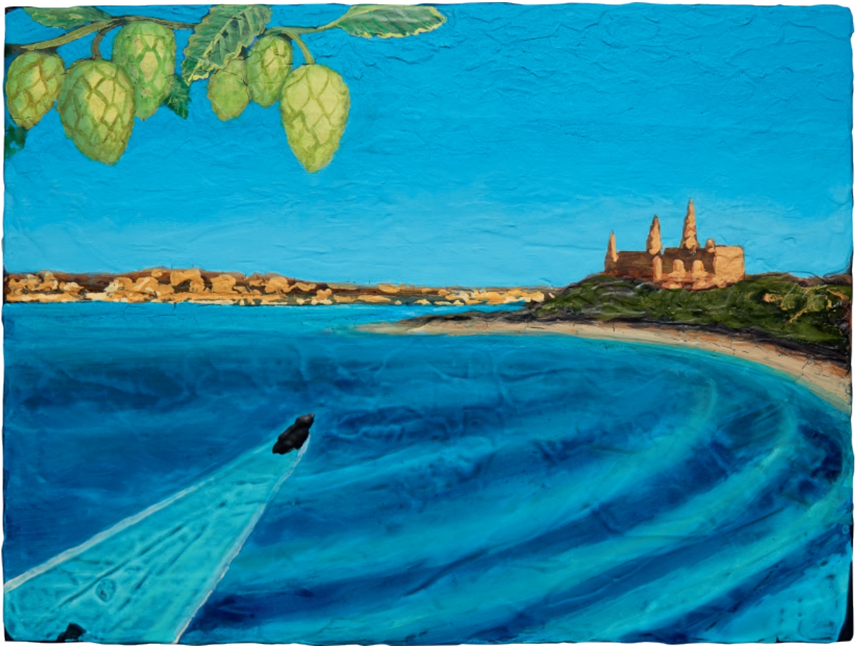 Magnus Andersen arbejder i figurativt maleri og det afspejler sig på årets etiket, hvor man ser indsejlingen ved Øresund mellem Helsingør og Helsingborg. I vandet svømmer en ælling hastigt med retning mod slottet, og i forgrunden titter en humleranke ind.